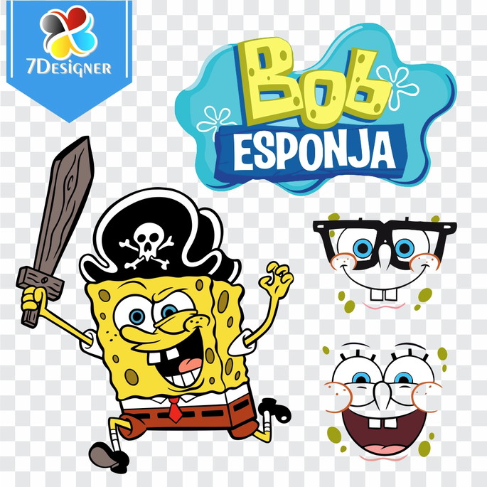 Kit Digital Bob Esponja (CDR e PNG) com 26 Vetores (sendo 16 Carinhas)